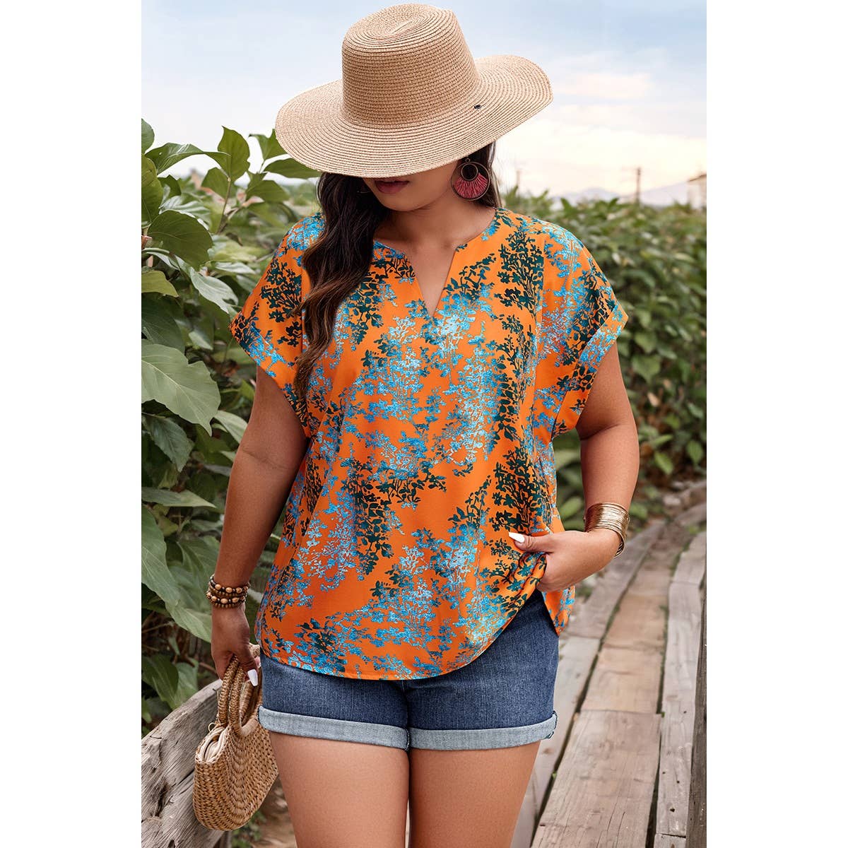Plus Floral V Neck Batwing Sleeve Loose Shirt - MVTFASHION.COM