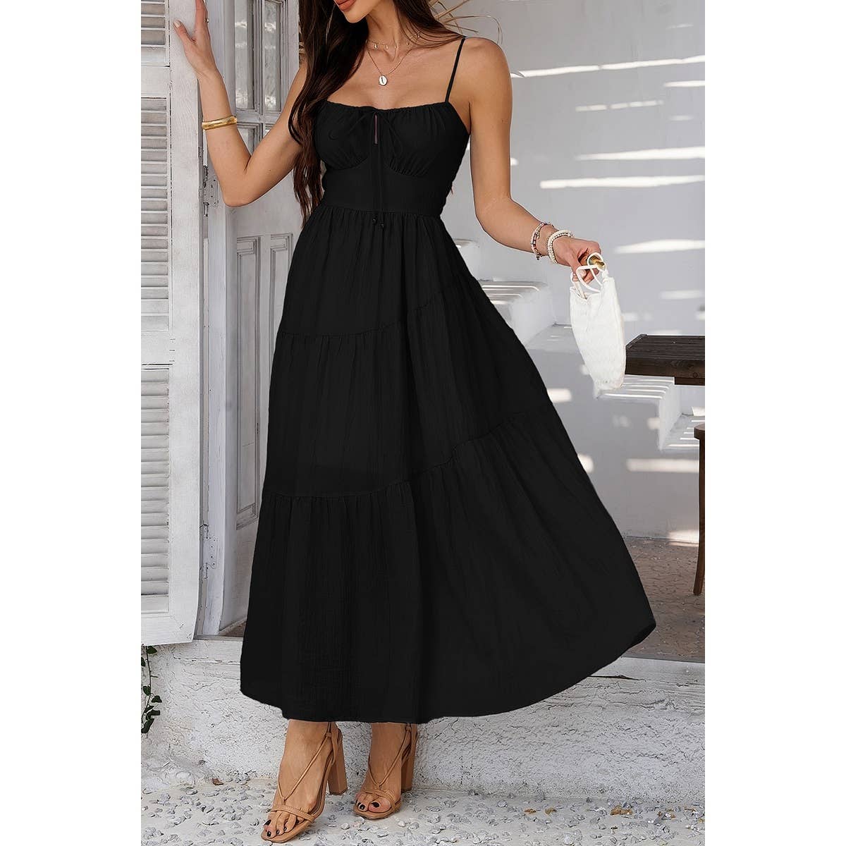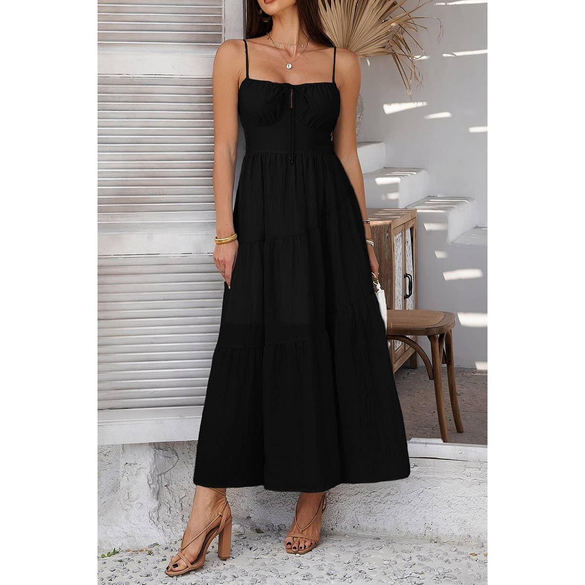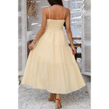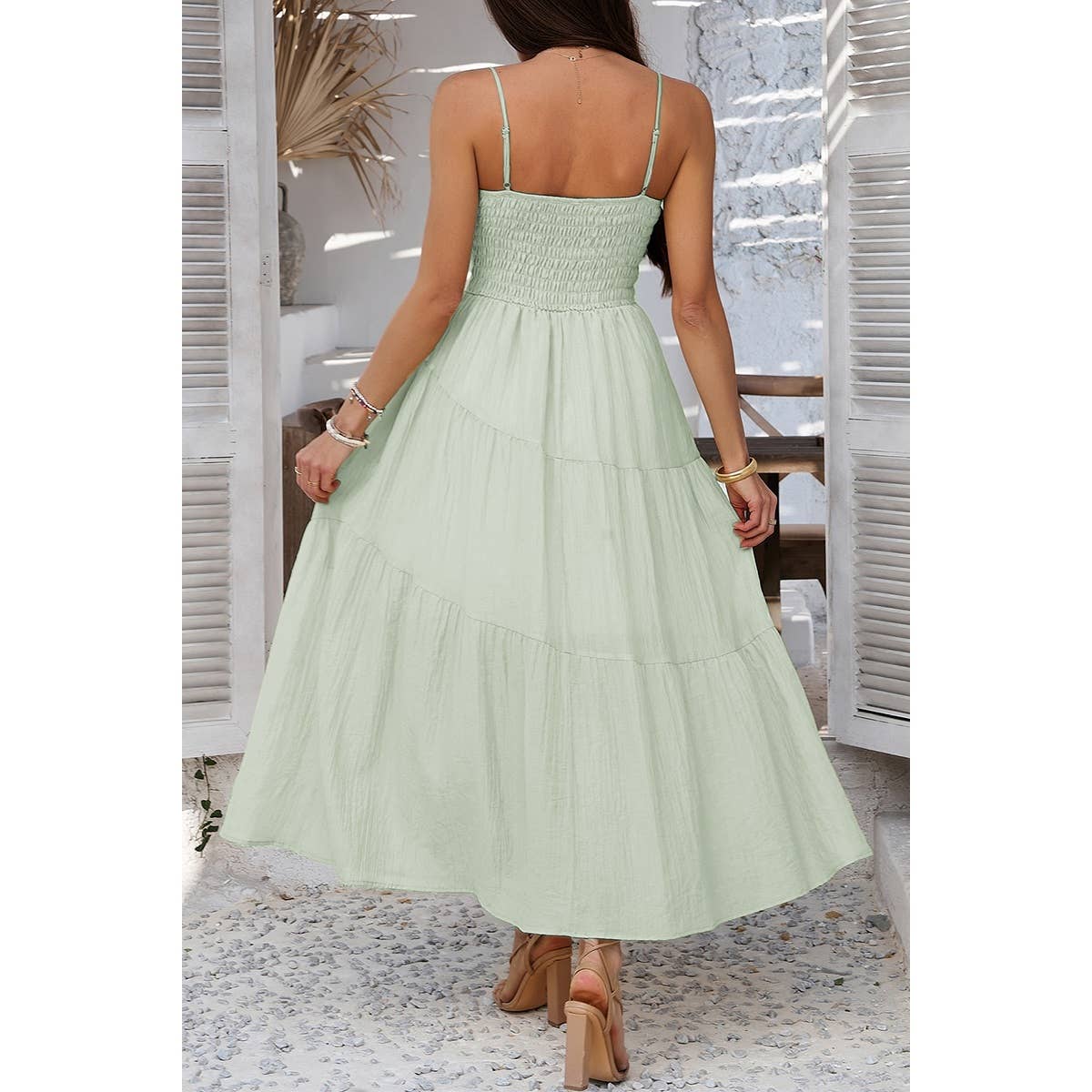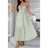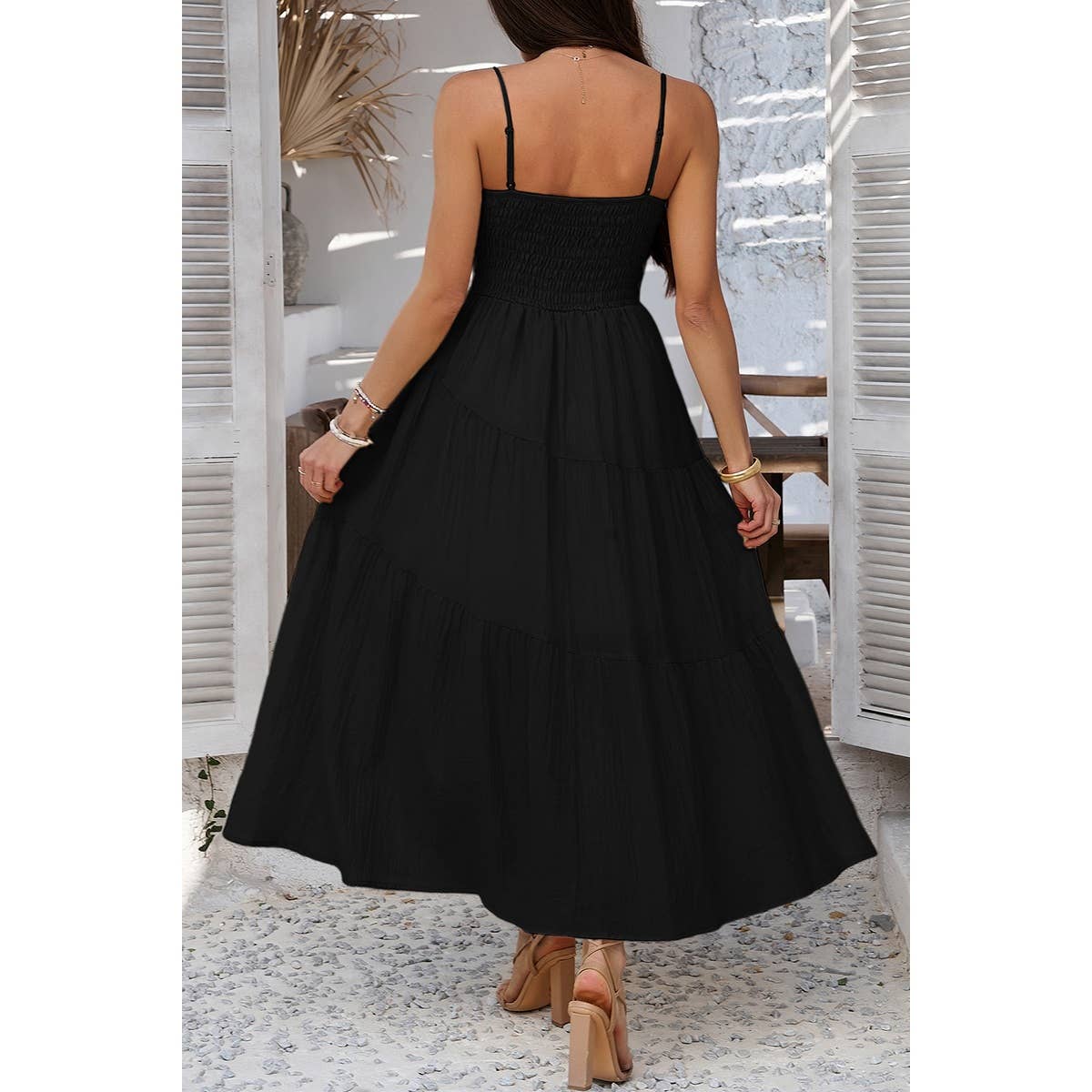 Features: Solid Sleeveless Smocked Tiered Maxi Cami Dress