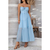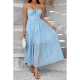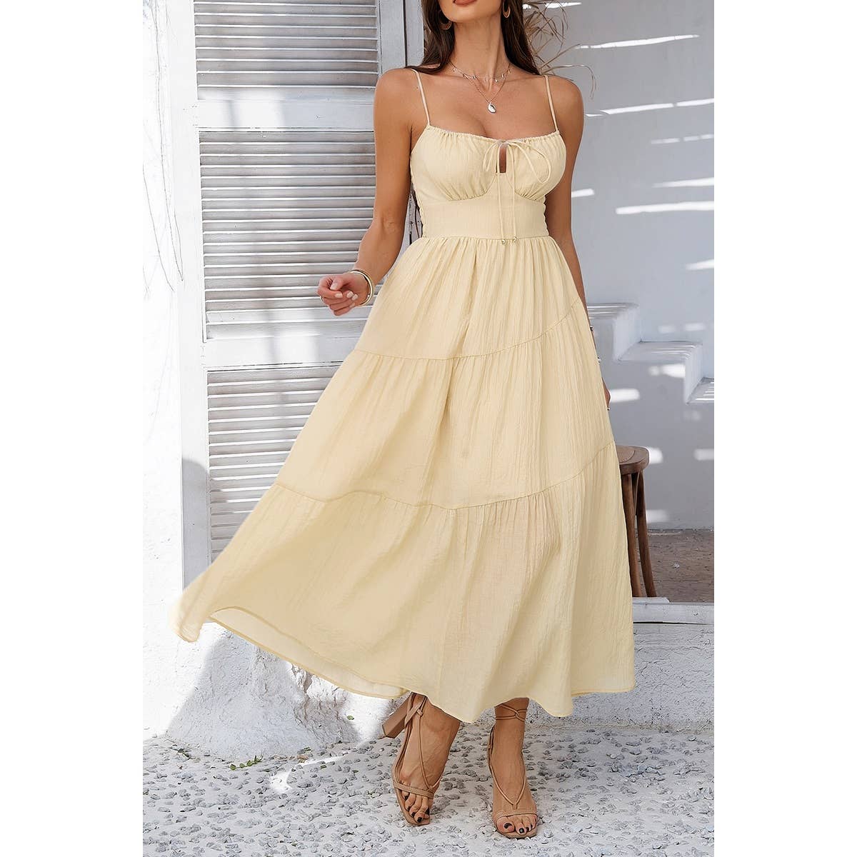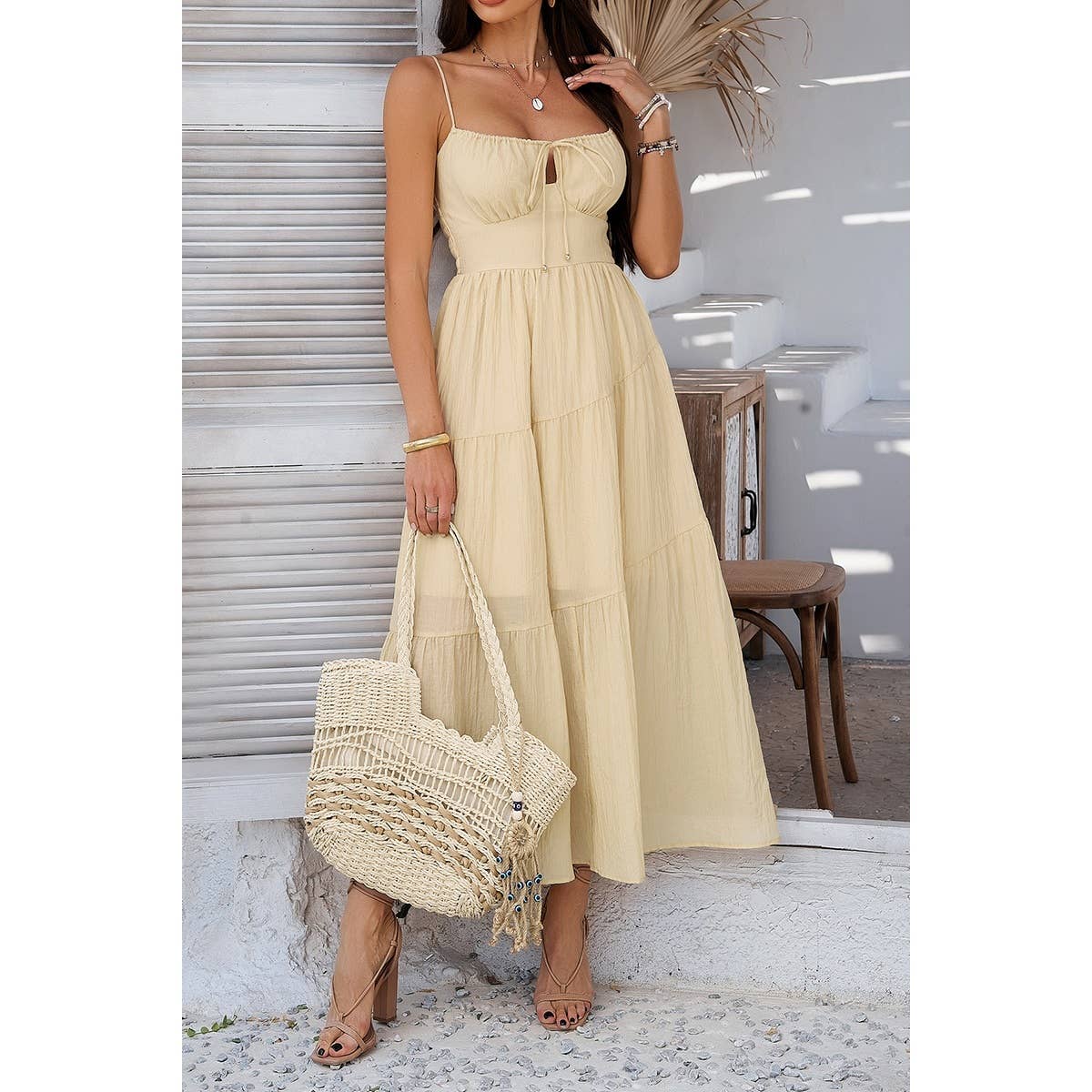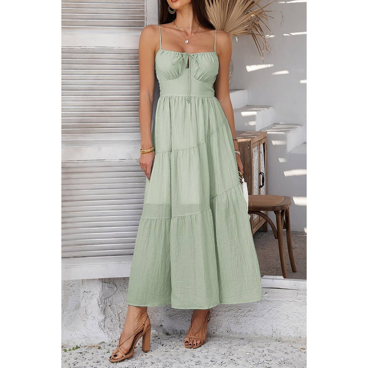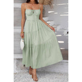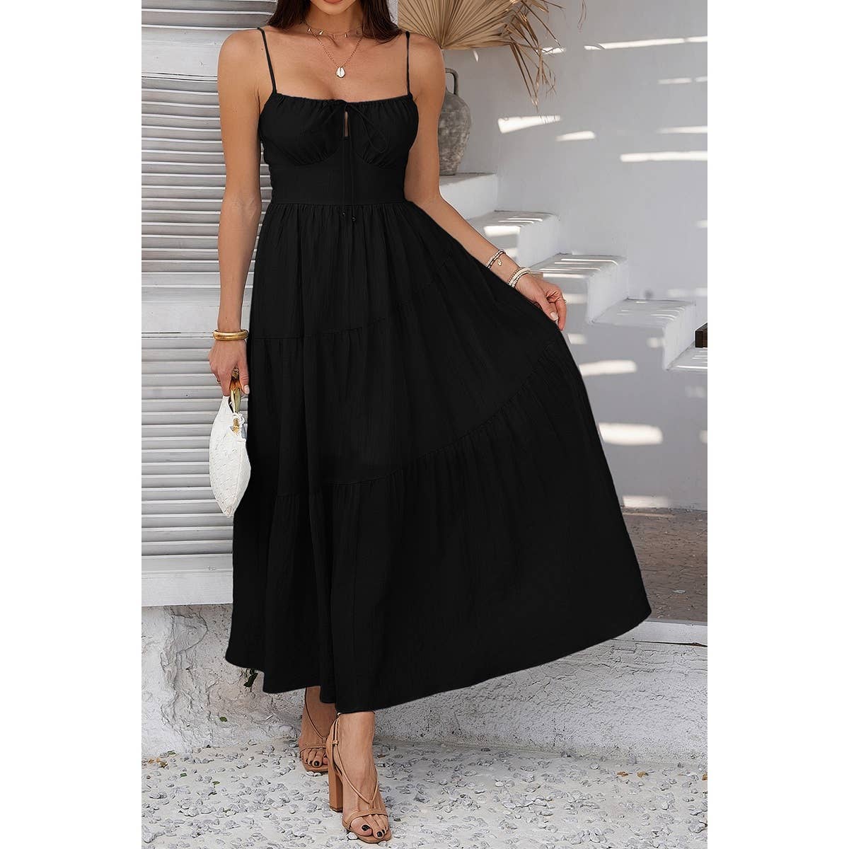 Features: Solid Sleeveless Smocked Tiered Maxi Cami Dress