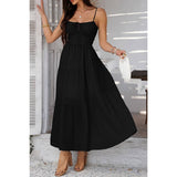 Solid Sleeveless Smocked Tiered Maxi Cami Dress