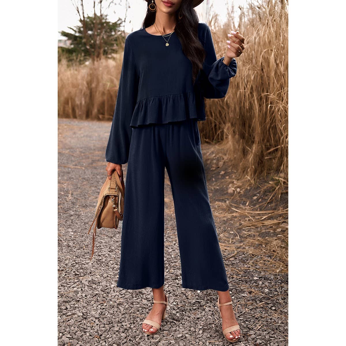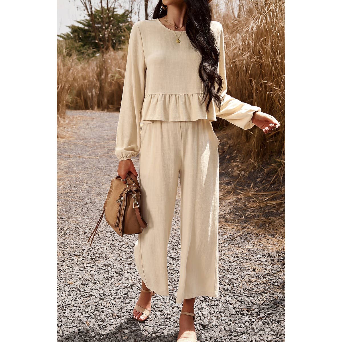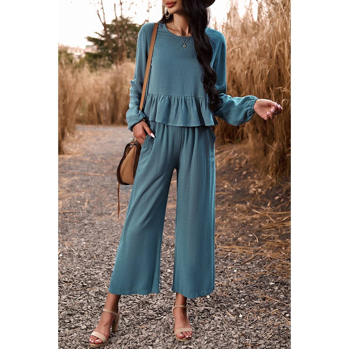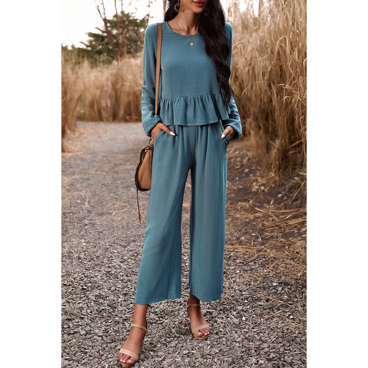 Upgrade your style and comfort with our Two Pieces Button Back Ruffle Plain Pocket Sets! Made with a soft and comfy blend of 70% viscose and 30% linen, these sets are perfect for any occasion. The stylish button back and ruffle design add an elegant touch, while the convenient pockets provide practicality. Elevate your wardrobe now! Wholesale and B2B available.